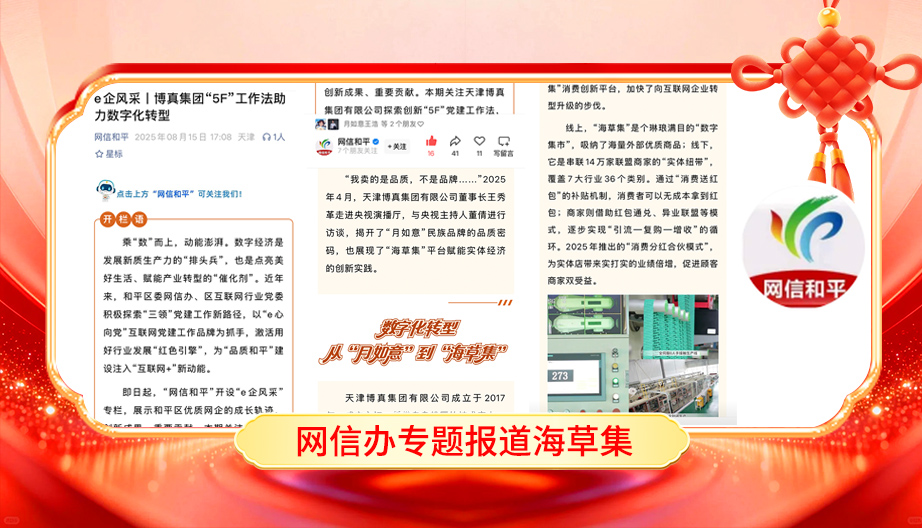 区委网信办重磅聚焦博真 “5F” 工作法,这一创新举措为区域发展注入“互联网 +” 强劲动能。专题报道在天津市各级政府部门广泛学习传阅,海草集模式成功出圈,树立起全国赋能实体经济的创新典范。初心铸魂,实干兴企,博真集团同步斩获“年度区域党建先进单位”殊荣,以党建红引领产业兴,书写高质量发展新篇章。